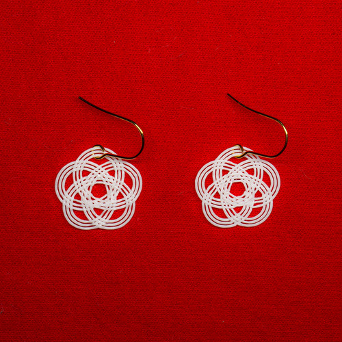 積層式3Dプリンターで作られた、水引梅結びをモチーフにしたピアス。