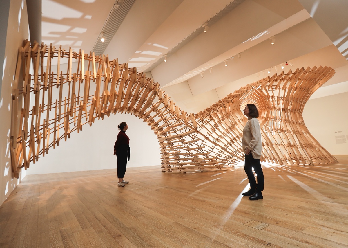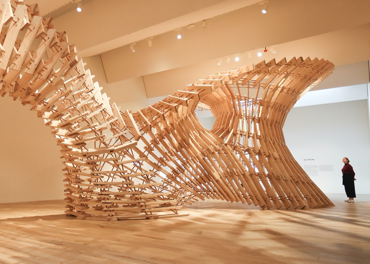 スコットランドにあるV&A Dundee美術館で催されたHello, Robot exhibitionで展示されたパビリオン。構造物は一部ロボットを利用して構築された。(ETH Zurich)