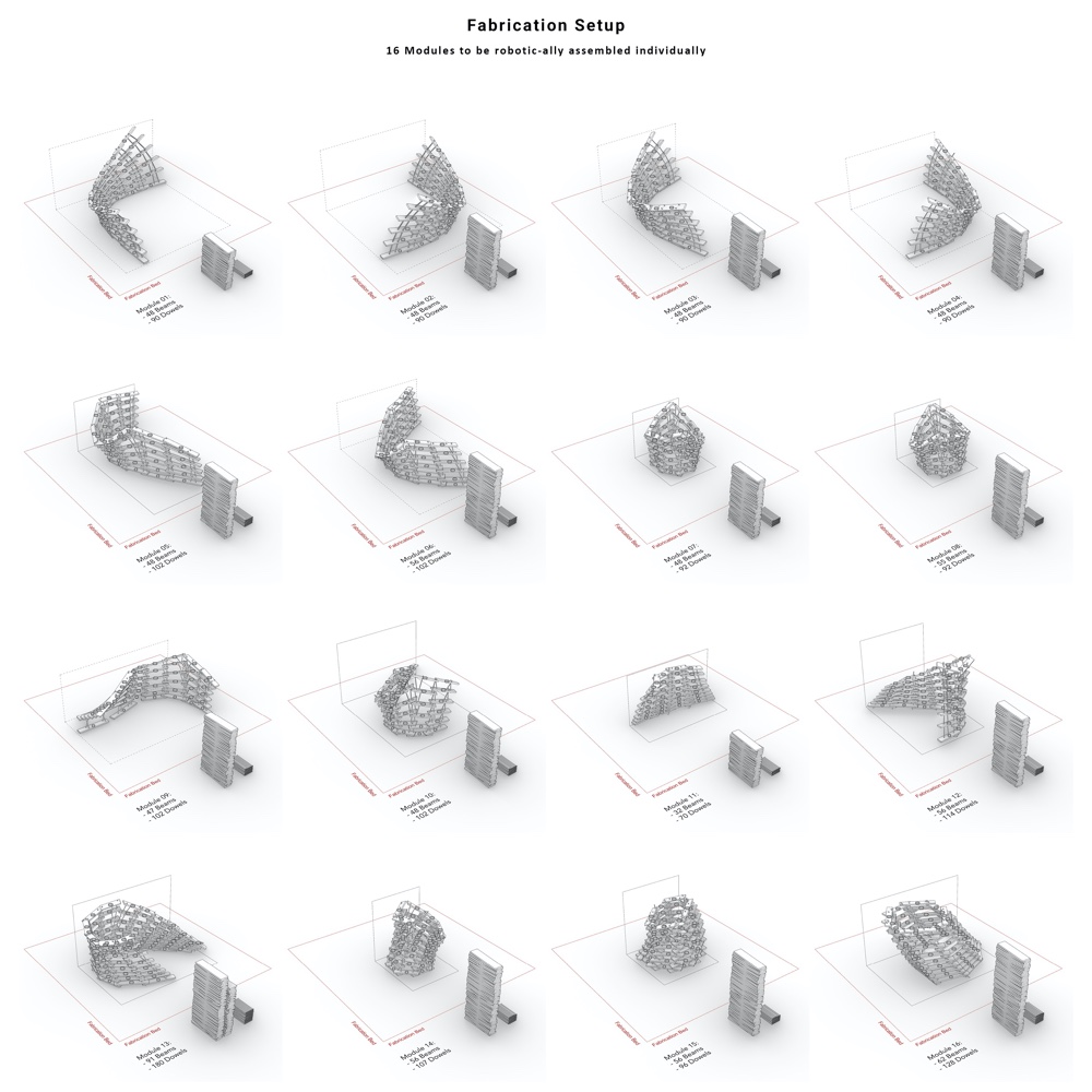 A semi-robotic-assembled pavilion for Hello, Robot exhibition at V&A Dundee, Scotland. (ETH Zurich)
